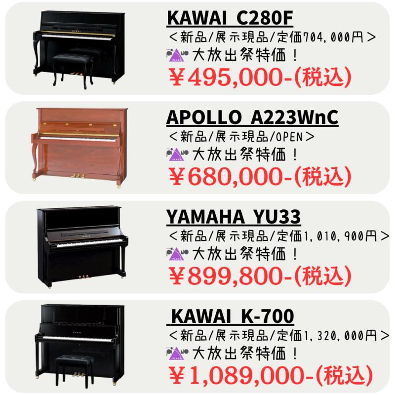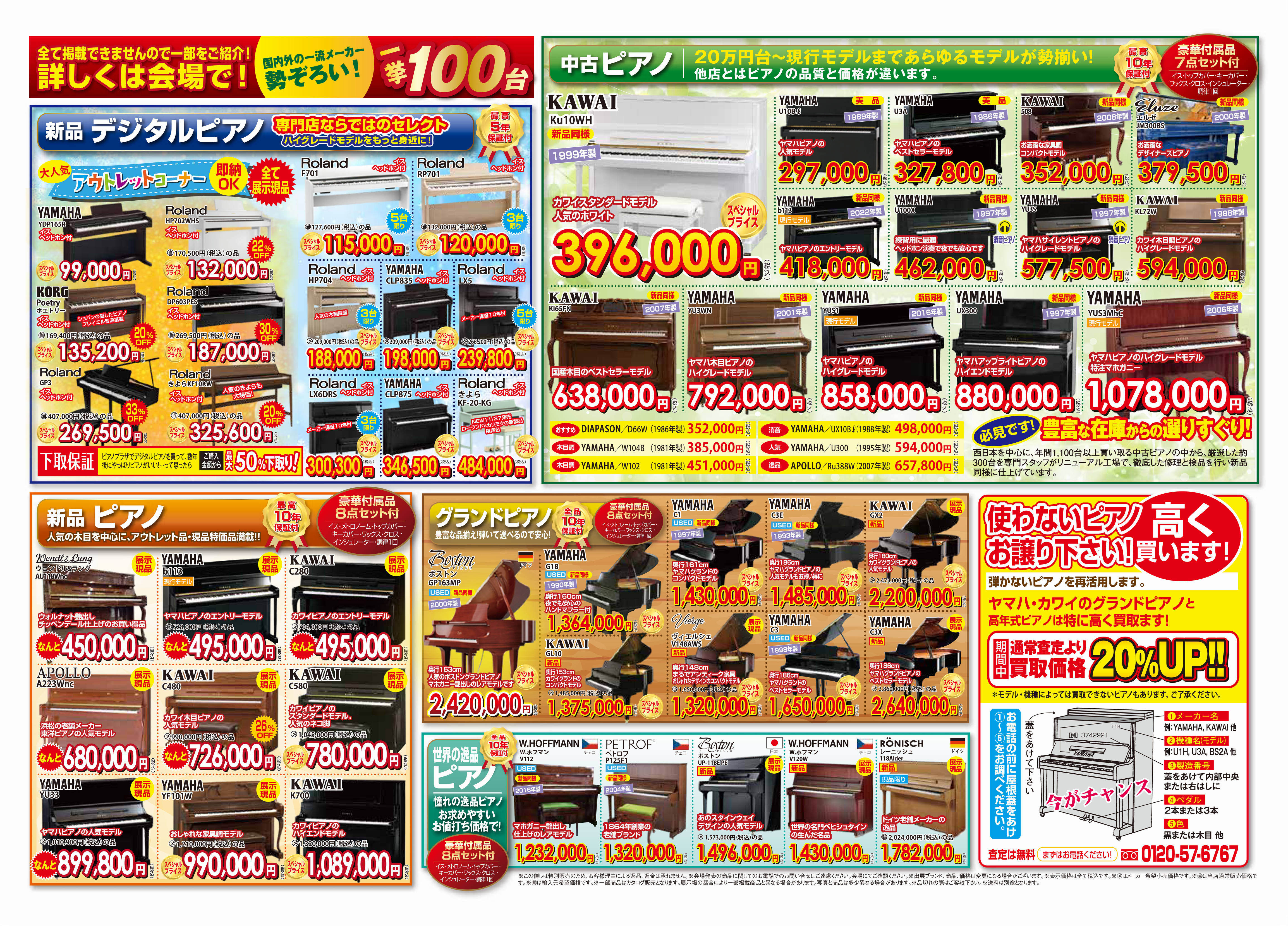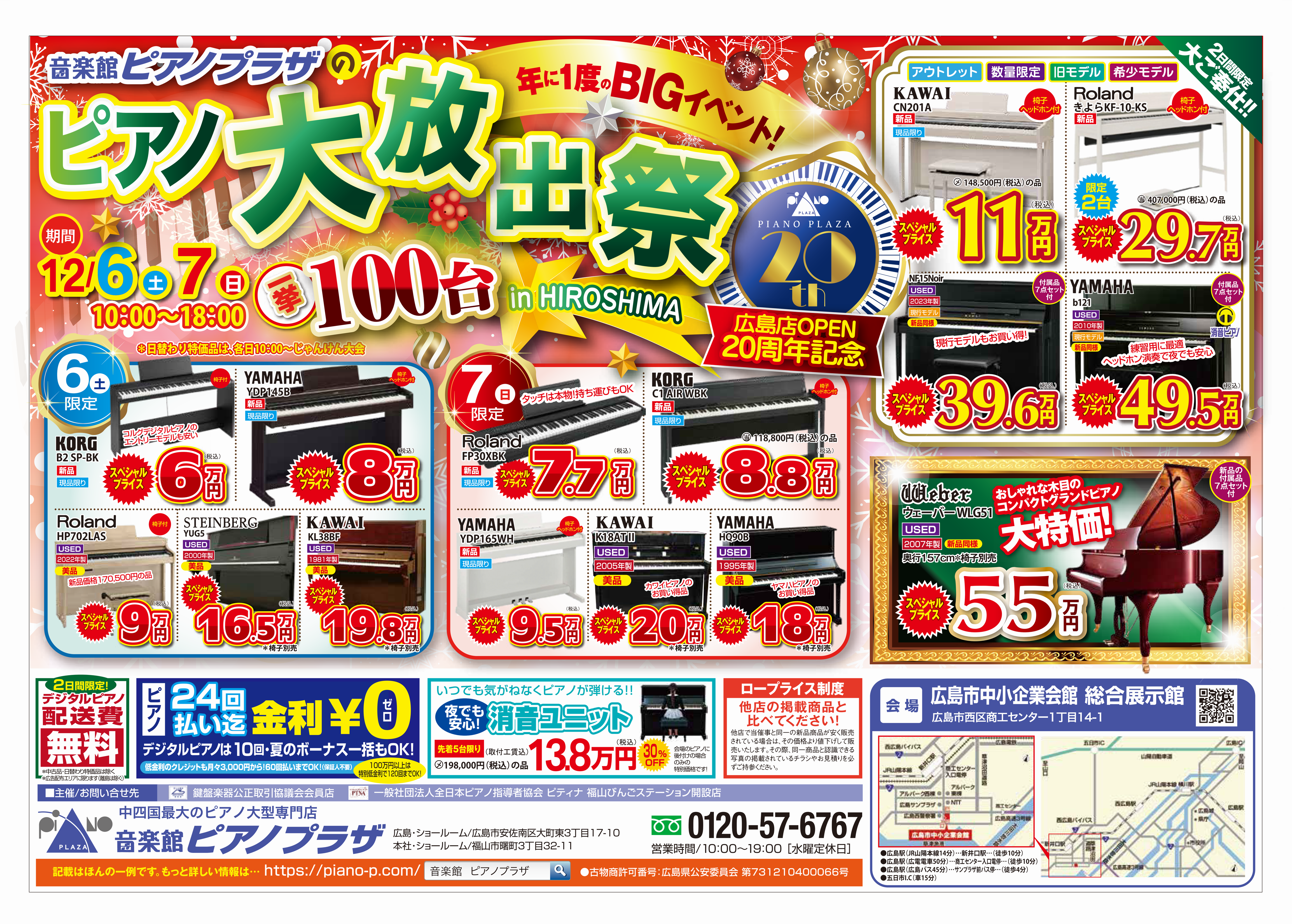 ピアノ大放出祭 in 広島、2日間限定のお買い得ピアノが盛りだくさん!