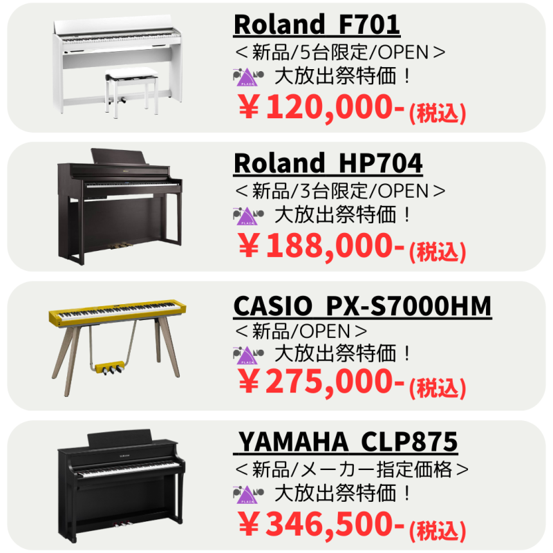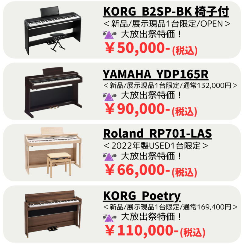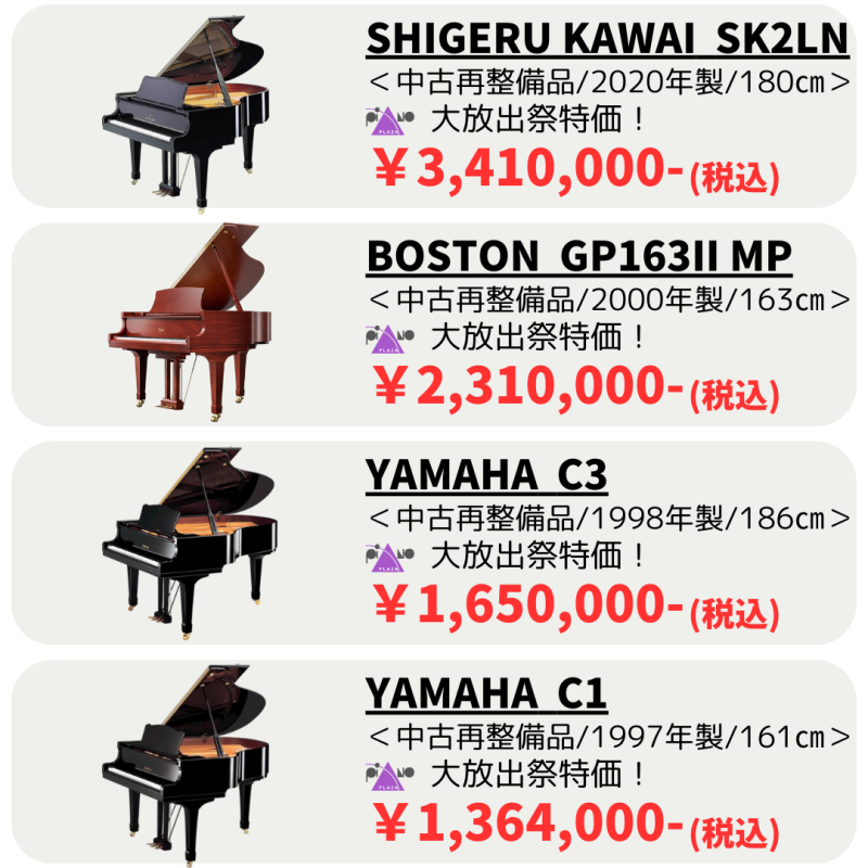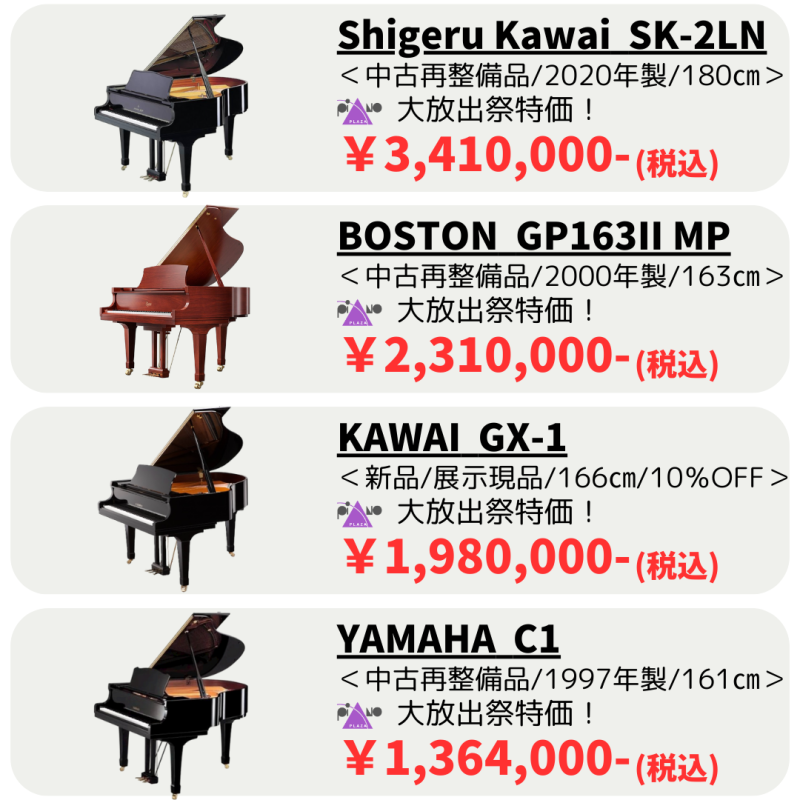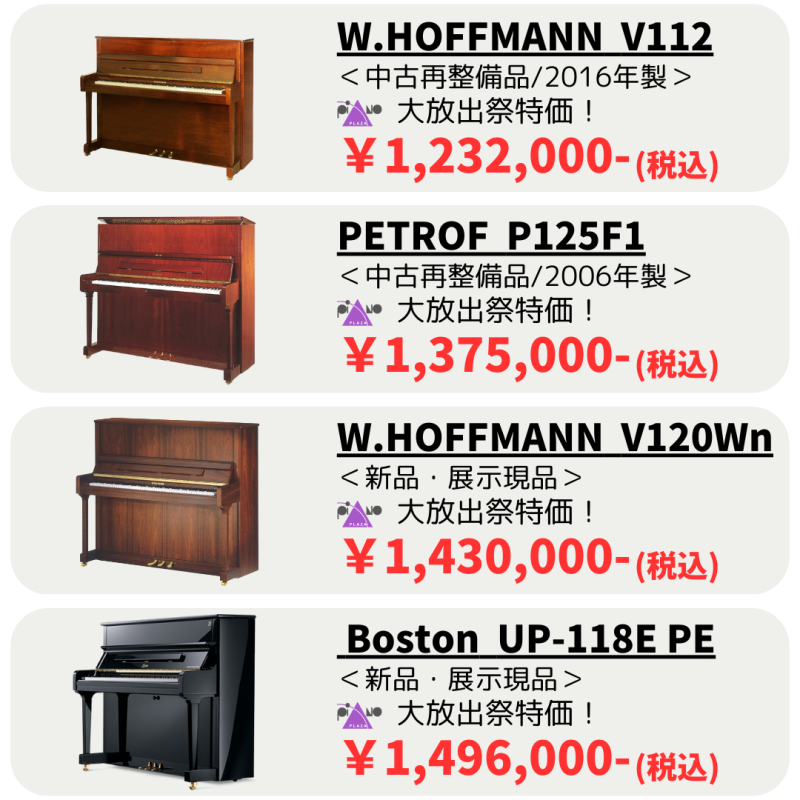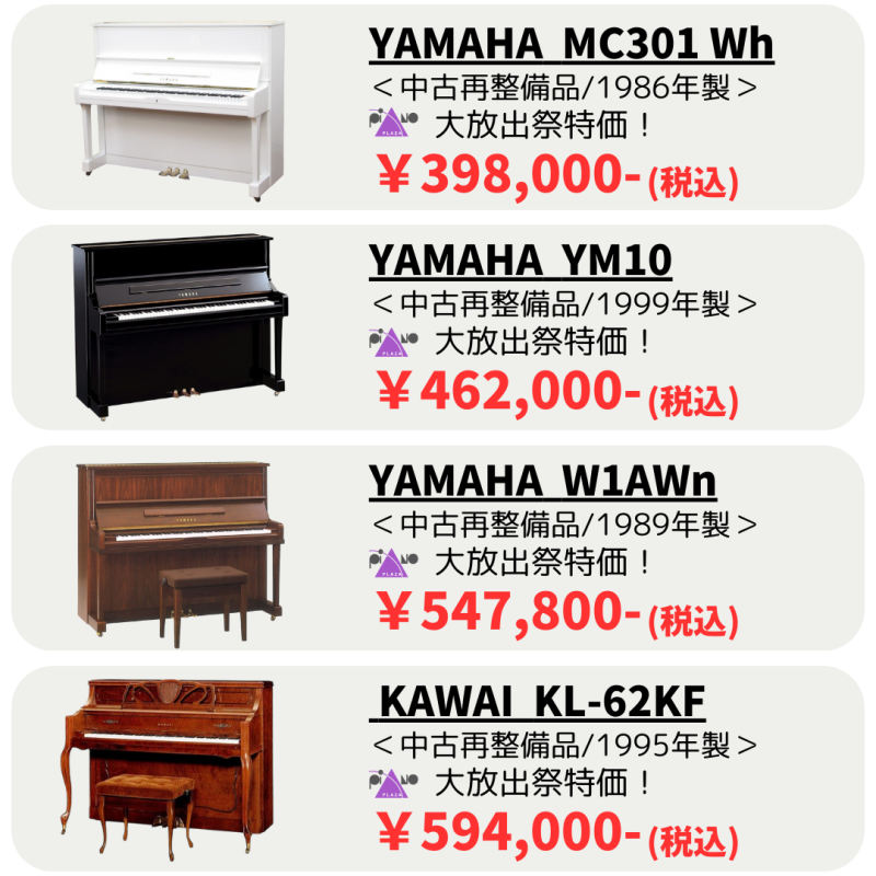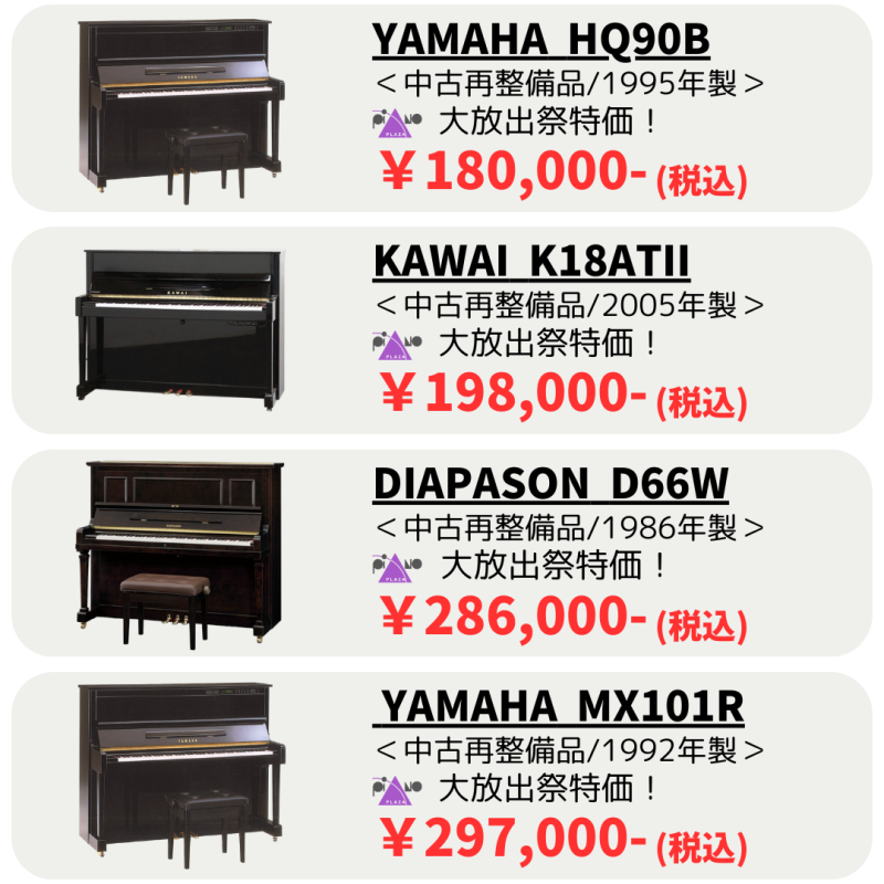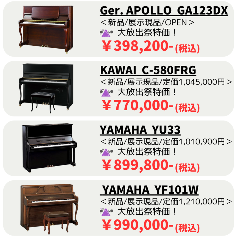 このほかにも、会場限定の特価ピアノを多数ご用意。
