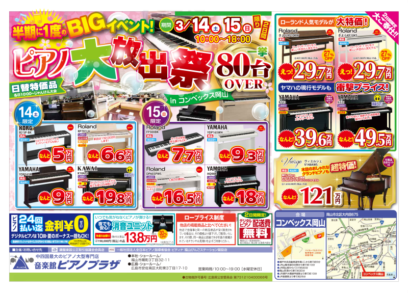 音楽館ピアノプラザは、広島県内に2店舗を展開するピアノ専門店。