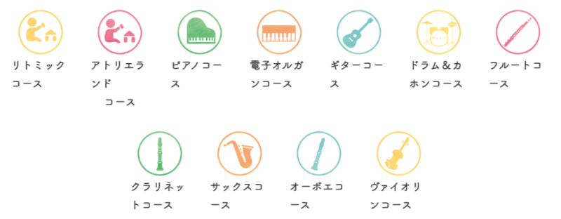 ピアノや電子オルガンだけでなく、リトミック、管楽器、弦楽器、打楽器など、多彩なコースをご用意しています。
