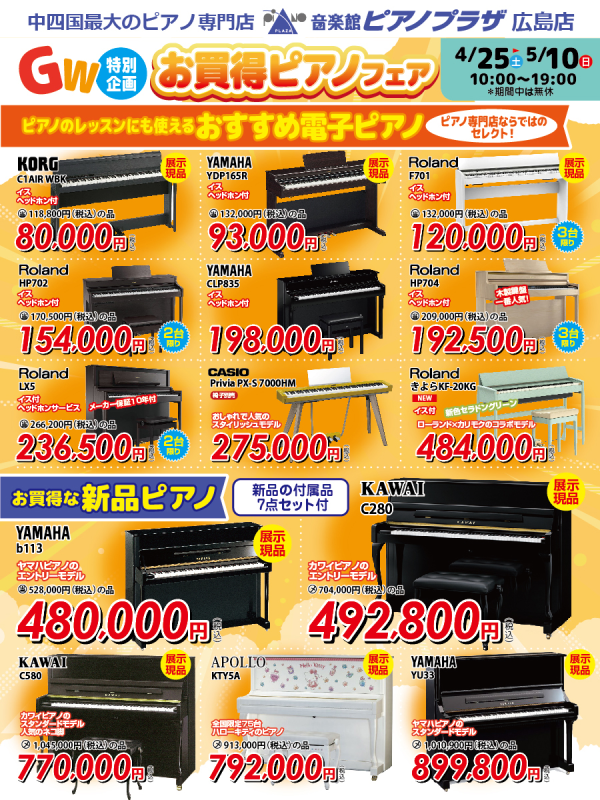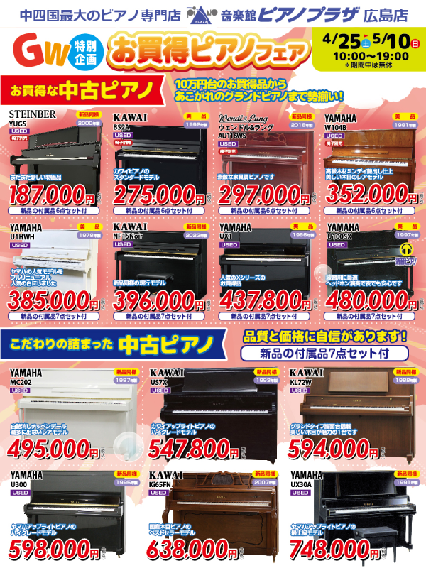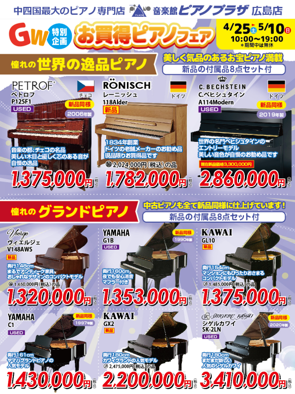 ゴールデンウィークの営業および「お買得ピアノフェア」開催のお知らせ